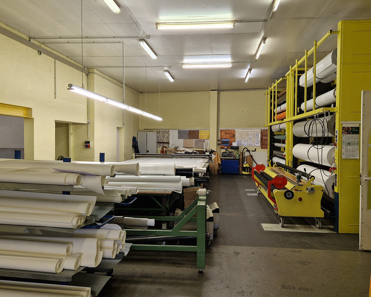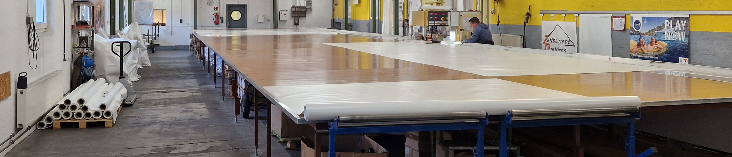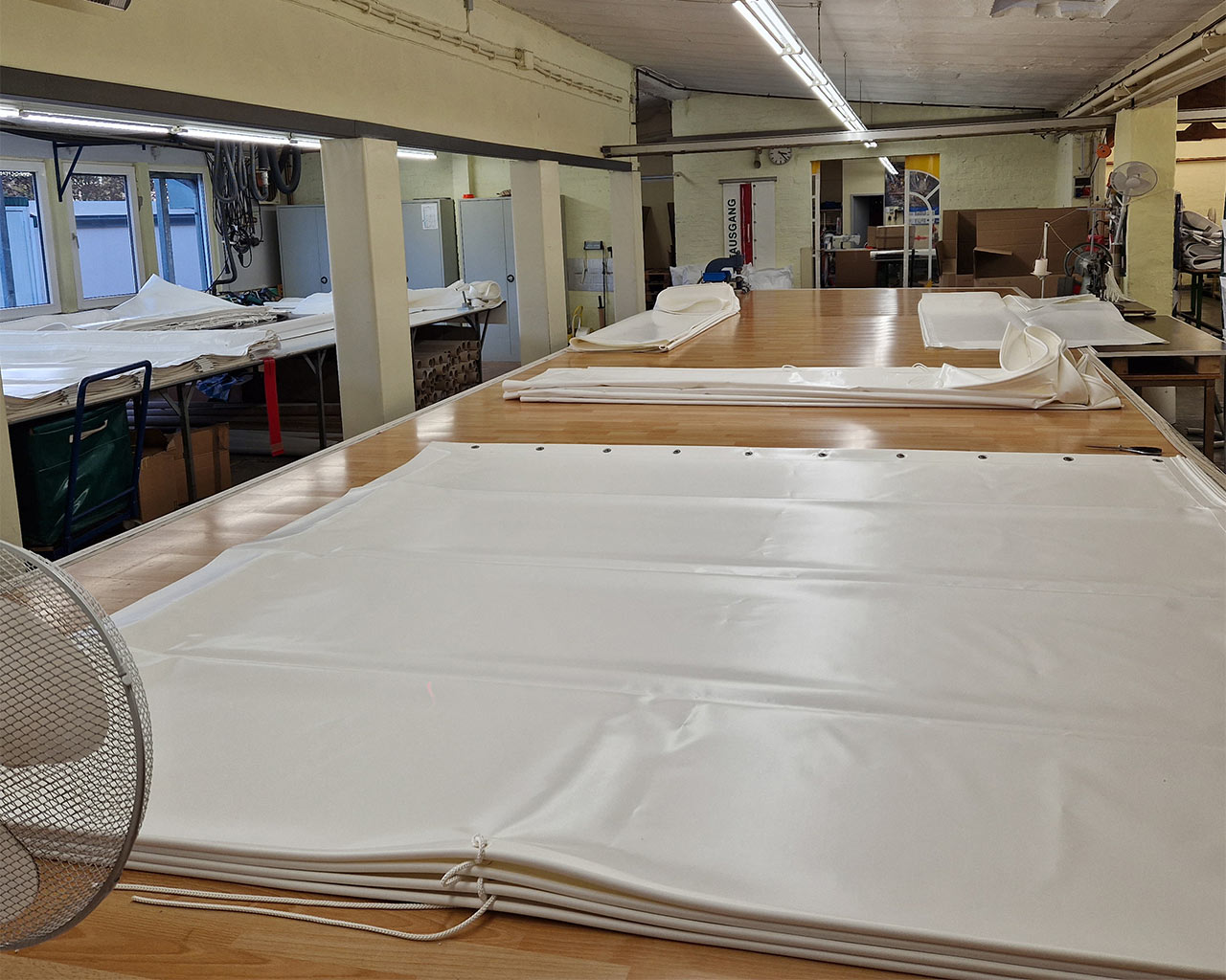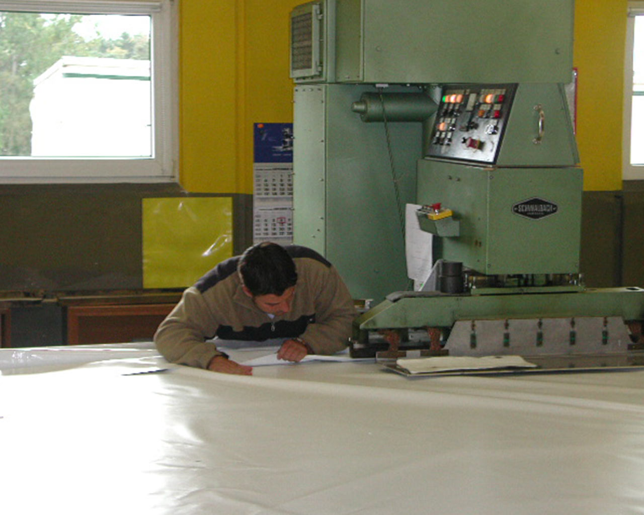Unsere Cutteranlage für den automatischen Zuschnitt arbeitet mit einer Verschnitt-Optimierung. Es fällt somit weniger Verschnitt an, weil eine Verschachtelung der Zuschnitte auf die gesamte Materialbreite von 3m erfolgt. So werden auch die kleinsten Zwischenräume noch genutzt und weniger Abfall produziert!