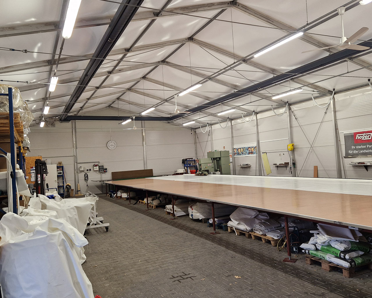 Als Arbeitserleichterung haben wir eine neue Ösen-Setzmaschine im Einsatz. Dieser Vollautomat setzt unsere 16 mm V2A-Ösen sekundenschnell, genau und in immer gleicher Qualität an die gewünschten Stellen unserer Planenkonfektion.